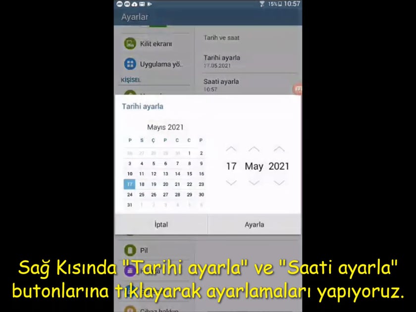 Tarih Ayarla Sekmesine Tıkladıktan Sonra Bugünün Tarihini Girerek Ayarla Butonuna Tıklıyoruz.
